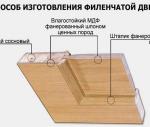 Шпоновані двері зазвичай виготовляються з дерев'яного каркаса з обшивкою листами ДСП або МДФ. В якості декоративного покриття використовується шпон цінних порід деревини, на який потім наноситься захисний шар лаку.