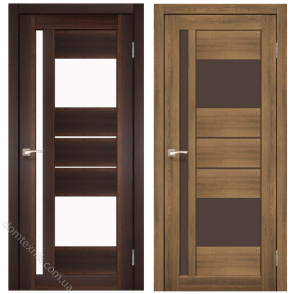 Конструкція дверей дерев'яна євробрус (вертикальні стійки і нижня і верхня перемичка) Зовнішне покриття ламінатін (екошпон), виробництва Італійської компанії «Lamitex». Ламінатін «Lamitex» колір венге,горіх,дуб білений,дуб грей - дорогий, сучасний екошпон.Під час виробництва і експлуатації ,горіння і утилізації не виділяє шкідливих випаровувань, не пахне хімікатами.